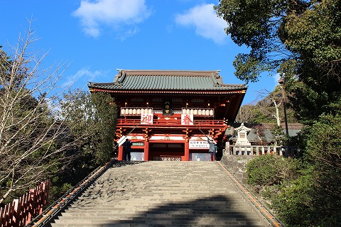 15:21 ようやく本宮に 大石段の最上段まで登りました。 後ろを振り返ると、下拝殿、三の鳥居、その先の若宮大路まで見渡すことができます。 景色が良いですが、後から人が登ってくるのでノンビリと見ているヒマはありませんね。 |
