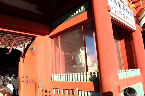 15:21 お参り 本殿の中に入り、お参り。 お賽銭は、おみくじ代と同じ200円。 ちょっと少ないかな。(笑) ちなみにここ撮影禁止でした。 警備の人に注意されちゃいました。 「スミマセン」 m(_ _)m |