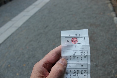 15:26 今年は 今年は、”十四番”。 去年は”凶”だったんですよねぇ〜。 で、今年は・・・・。 どこに書いてあるんだっけ? |