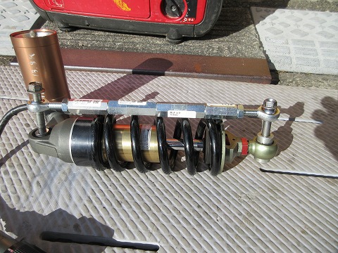 9:56 動かせない リヤサスペンションを外した状態では、スタンドは外せないので、動かせません。 このままの状態で放置です。 動かせないのは不便なので、サスペンションの代わりになるものを付けようと思います。 ちょっと、ホームセンターに買出しに行ってきます。 |