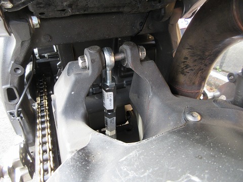 9:54 リヤサスペンションを外す ステップ スタンドをかけたら、リヤサスペンションに荷重がかからない状態にして、上下の取付ボルトを緩めて、リヤサスペンションを取り外しました。 |