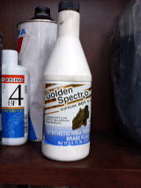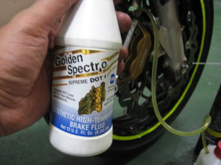 6月の14日のモテギの走行会の時にフロントブレーキがバクバクになりました。 そう言えば、昨年のから換えていませんでした。 交換したブレーキオイルは昨年交換したのと同じブランドSpectroのGolden Spectroです。 |
