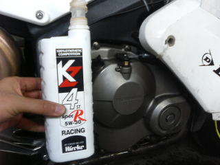 更新済 | 060715 | オイル交換 | 5月にオイル交換をしてから、練習走行を4回、約4時間乗りました。 走行距離で413km少し走りすぎ見たいです。 交換したオイルは真っ黒、結構汚れていました。 交換後はきちっとワイヤーロック。 これをすると、レーサーをいじっている気分に浸れます。(裏の写真で) |