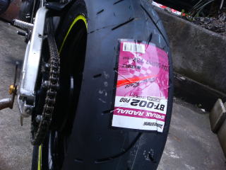 更新済 | 050526 | リヤタイヤ交換しました | '06年に入り、2月に筑波で練習走行を1回行って、リヤタイヤが終わりました。 今回も前回に引き続き、D209に交換します。 |