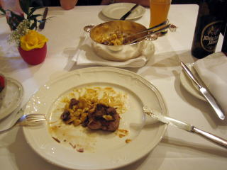 ちなみに、これは豚肉をソテーしたものに、チーズとマカロニみたいなの入りのホワイトソースをかけたものです。