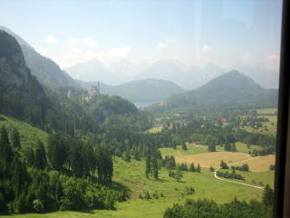 12:18 かすみがかかっていてわかりにくいですが、ロープウエイの窓からノイシュバンシュタイン城を見ることが出来ます。(油絵ではありません。念のために) |