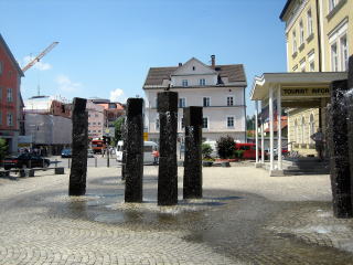 13:28 フュッセンに到着 フュッセンの町に来ました。 シュバンガウ村からフュッセンの町までは車で10分程度です。 写真はフュッセンのツーリストインフォメーション前にある広場のモニュメントです。 モニュメントの上部からは水が出ており、下が池になっているわけではないので、お構いなしに歩道に垂れ流し状態です。(日本人の感覚からすれば、「おいおいこれで良いんかい?」と言った感じです) ここでまたクレジットカードでユーロを引き出し(正確にはキャッシング)、少し遅い昼食を取りました。 流石に4日目でドイツ料理も飽きてきましたので、今回はピザにしました。 ドイツ国内でイタリア料理店は比較的ポピュラーな様で、ちょっとした町であれば一軒はイタリア料理屋を見ることができました。 |
