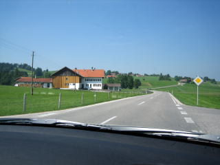 15:22 フュッセンの町で昼食を取り、アンズバッハに向けて出発です。 写真はフュッセン郊外の田園地帯です。景色はなんとなく北海道に似ていますね。 飛ばしたらさぞや気持ちよさそうですが、今の車はディーゼルエンジン。 しかも、女性3人乗っていて、少しでも飛ばすと「危ないから、飛ばすな!」とすぐに警告されます。 |