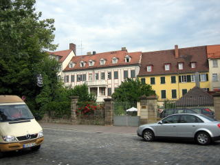 9:03 出発 通りをはさんでホテルの向かいにある駐車場まできました。 写真の中央の白っぽい建物が昨晩泊まったホテルです。 アンズバッハの町の中は、すべて石畳で、車の走行音がうるさく響き渡ります。 あるじはアスファルト舗装の方が静かで良いと思うのですが・・・ それでは、次の目的地ローテンブルグに向かって出発することにしましょう。 |