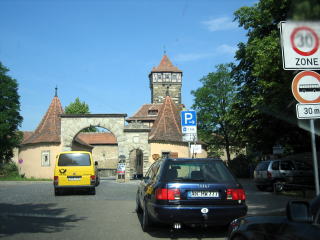 10:27 ローテンブルグに到着 30分ほどでローテンブルグに到着しました。 写真の正面はローテンブルグの東側の門(ガルゲン門)です。 |