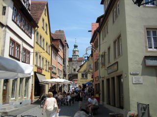 10:44 ローテンブルグの起源は中世で、写真の様に城壁に囲まれた町です。 城壁の外はきれいな緑が広がっており、城壁の中は都市になっています。 中世時代は、平和なときは城門を開け周辺で農業をし、戦争になり敵に攻められると城門を閉め戦ったと、昔案内をしてくれたドイツ人が言っていました。 |