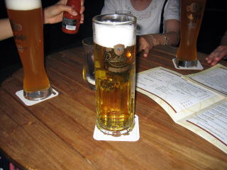 21:53 マインツのホテルに着くまで、あるじは運転。 そして、パッセンジャーシートではレンタカーのシステムを良くわからない嫁が、ハーツに電話をして、要領を得ないやりとりをしています。 後の席では、姉が「返却なんて明日で良いから、早くホテルに行こう」と無理難題を。 と言うことで、渋滞からホテルのチェックインまで、写真が欠如しています。(-_-;) やっとの思いでホテルに到着、チェックインをして、やっと夕食(ビール)にありつきました。 |