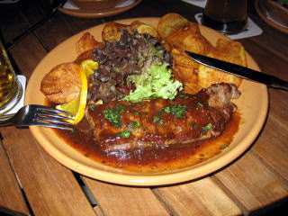 22:25 夕食はちょっと、ドイツ料理から離れて?と言うより、スタミナを付けなければ女性陣に対抗出来ないと思いビーフステーキにしました。 予想通り、肉はかなり固めでしたが、その効果はあったのでしょうか。 |