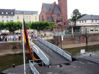 8:14 今朝は早めに朝食を取り、ホテルをチェックアウトして、ライン川下りの出発点、マインツの停船場に来ました。 今日は予定が盛りだくさんです。 まず、あるじ達が宿泊したマインツを8:45発の観光船でコブレンツまでライン川の川下りをします。 コブレンツには14:10に到着予定です。 日本を出発する前に、乗船するのが日曜日と言うこともあり、一応インターネットで予約をしておきましたが、特に予約をしなくとも十分な余裕がありました。ただ、予約料金などは必要ないので、予約をしておいても無駄にはならないと思います。 川下りの後、コブレンツを14:48発の急行列車で、マインツを経由してフランクフルト空港まで行きます。 フランクフルト空港には15:59に到着です。 姉は仕事の都合でドイツ旅行は今日までです。みんなで姉をフランクフルト空港で送り出します。 姉を送り出した後、母親と嫁とあるじは、フランクフルト空港16:42発の特急電車でハンブルグに向かいます。 ハンブルグには20:36分に到着する予定です。 |