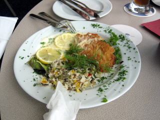 13:06 こちらは、嫁が食べた魚のフライ、タルタルソース添え。 比較的(あくまでも比較的)さっぱりとしていました。 12.4ユーロ=約1,660円 |