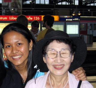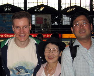 21:00 ハンブルグ駅には定時に到着しました。 左−嫁の妹、左−あるじの母親です。 (あるじの嫁は日本ではちょっと目立ちますので、割愛させていただきました) ちなみに、嫁と妹は似ていません。 嫁の妹は昨年ドイツ人と結婚して、ここハンブルグに住んでいます。 今回、ドイツ旅行をした理由の一つは、この妹夫婦を訪問することでした。 (嫁もあるじも、妹の旦那さんとは会ったことがありませんでした) |