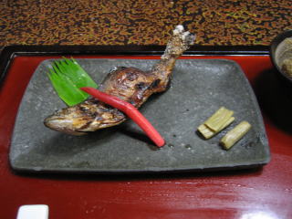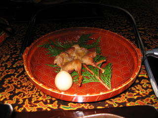 次に供されたのは「うずらの親子」。焼いてあります。 鶏に比べて、味が濃いですね。 |