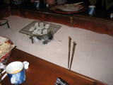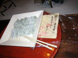 食後は「談話室」に移って、囲炉裏端で「???」を焼いて、コーヒーをいただきました。 「???」何だったでしょう。この食べ物は。 |