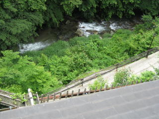 こんな感じに、眼下に清流を望むことが出来ます。 前日は雨でしたが、晴れた日の夕暮れ時にでも、露天風呂に入ったら、とっても気持ち良さそう。 |