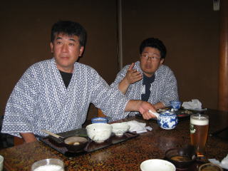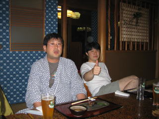 夕食のある風景。 アイスエイジさんと男レーシングさん。 |