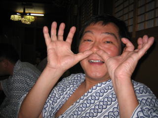 宿に入るとすぐ、宿のご主人「くまさん」がお出迎え。 |