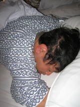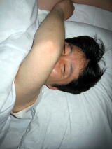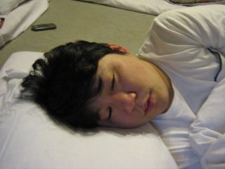 あるじ、爆睡中。 ちょっと、飲んだので、真っ赤です。 頭髪の間から見える地肌。将来ちょっとヤバイかも。 |