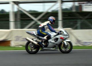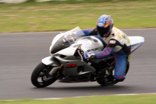 アイスエイジさん+CBR600RR ビデオカメラが邪魔で伏せられません。 ホームストレートはあるじが、馬鹿ちょんデジカメで撮ってみました。 デジカメは追っかけるのは難しいですね。 どれも、ピンぼけです。ごめんなさい。 |