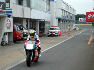 レプソルNSRさん:遅れて登場。 みんな、もうコースインしてますよ。 |