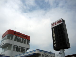 今日の走行コンディションは 走行前 7:35分 気温22.6℃ 湿度60% 風−無し この表示板はコースインゲート脇にありますが、最近はインジェクション車が多いせいか、練習走行の日に来ても、この表示板を見に来ている人を見たことがありません。 この下には、路面温度の表示があるので、貴重だと思うんですが・・・ |