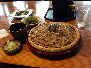 午後0:58 昼食 温泉街でそば屋を発見。 看板に「手打ち一点張り」と書いてあります。 お昼ご飯にします。 |