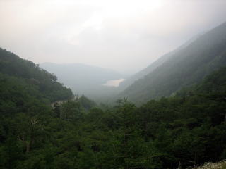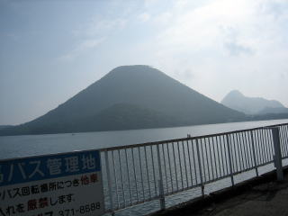 午前8:03 榛名湖畔に到着 榛名湖畔に到着です。 朝の8時と言うこともあり、だれもいません。売店も開いていません。ちょっと寂しいです。 今日は天気は良いのですが、夏場ですので、湿気が多く、もやっぽくて眺望は良くありません。 |
