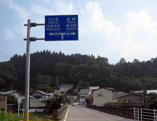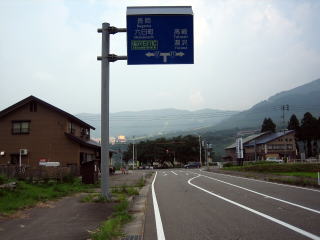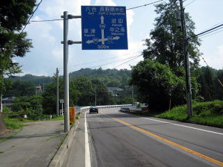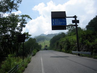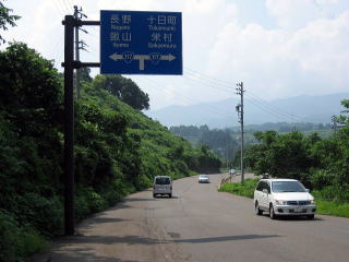 午後0:00 野沢温泉村の村境に到着 小一時間走ったところで、野沢温泉村の村境に到着です。 ここまで、当然信号はゼロ。対向車はたまにある程度です。 まだ、野沢温泉村の中心部まではかなりあります。 |