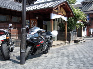 自分の予定では、「昼頃に草津温泉に着いて、旨い蕎麦でも食べ、温泉に入って、風呂上がりに休憩所で仮眠を取って、ゆっくり帰路に着き、夜暑さがおさまった頃に下界にでも下りようかな」と考えていましたが、まだ、10時前です。 この時間では食事が出来るところは、まだ開いていません。 バイクを停めて、しばらく湯畑を眺めていると、写真の建物からタオルを持った人が時々出てきます。 「ここは日帰り入浴が出来る温泉だな、草津まで来たのだから、とりあえず温泉でも入っていこうか」 と思い入ってみることにしました。入ったのは温泉は「白旗の湯」 ガラッと扉を開けると、いきなり湯船。・・・ちょこっと端に脱衣スペースと湯船しかなく、水道はありません。草津温泉に何カ所かあるらしい公衆浴場でした。休憩所なんてものはもちろんありません。 「どうしよう」と思いましたが、「タダ」なので入ることにしました。 |