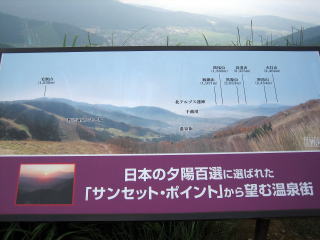 だれが選出したかわかりませんが、「日本の夕日百選」に選ばれた温泉街だそうです。 でも、ここまで夜の夜中に来るのは相当度胸が必要だと思います。 あるじであれば一人ではとても恐くて来ることは出来ません。(熊が出そうですし・・・) |