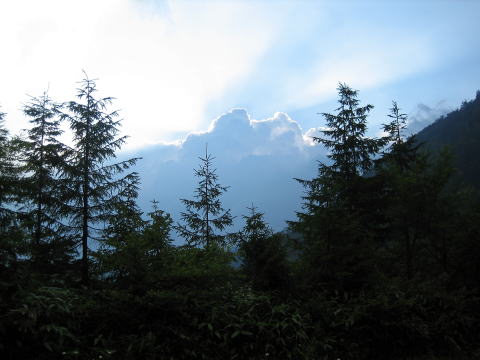| 午後5:27 金精道路で1枚。積乱雲が近づいてきました。雷にならなければいいのですが・・・ | |