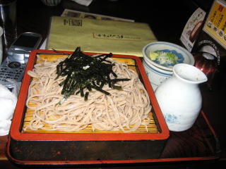 もりそばです。(海苔は不要だと思うのですが・・・) ツーレポ読んでいただいている方々には説明不要ですね。 もちろん、”あるじ”がいただきます。(*^_^*) 「鴨汁そば」「もりそば」とも味は・・・・すみません。10日経った今ではあまり覚えてません。 覚えていないと言うことは、不味くはない、すごく美味い訳でもない。 きっと、普通よりちょっと上?くらいだと思います。 次回来たとき、他の店を探す時間がなかったら、ここでも文句はない。くらいの感じだったと思います。 |