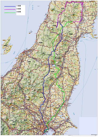 (3日目) 川渡温泉→国道47号→県道28号→尾花沢→国道347号→国道287号→県道233号→県道234号→県道2号(西吾妻スカイバレー)→