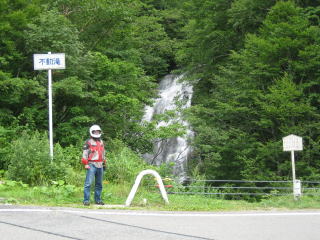 12:49 西会津スカイバレーにて 米沢市から県道233→234号と走り、県道2号線「西会津スカイバレー」に入りました。 写真は西会津スカイバレーの途中にある「不動滝」です。 西会津スカイバレーはつづら折りのワインディングロードで低速の回り込んだコーナーが続きます。 米沢から福島方面に向かって走ると、右手は山で、左手は谷になっています。 谷は深く、転倒落下したら、30m以上もあるようなところもあり、ライディングにも緊張感が漂います。 |