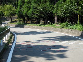対向車がくると離合のために減速しなければなりませんが、急な下り勾配のため思ったほど減速しないため、ヒヤッとすることがあります。