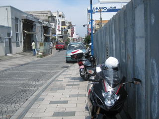 まったく車が来ないので、バイクを道のど真ん中に置いてみました。