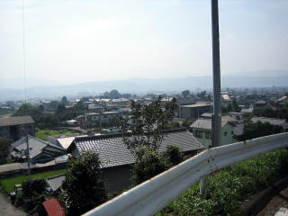 夏場と言うことで、水蒸気で視界が悪いですが、正面は富士宮の市街地です。