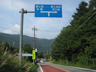 ここを右折して、富士吉田、河口湖方面に進みます。