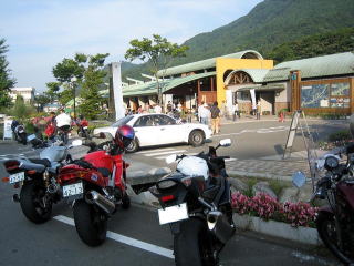 忍野村から、山中湖沿いの道を通り、国道413号線道志道に入り東進して「道志道の駅」で休憩です。