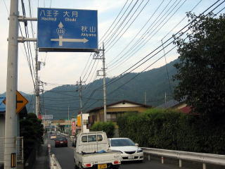 国道139号線を大月方面に都留市内を進むと、県道35号線との交差点に着きます。
