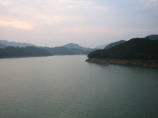 宮が瀬ダムに到着しました。辺りは少し暗くなってきました。