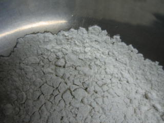 そば粉です。 写真では微妙に色合いがわかりませんが、うぐいす色のきれいなそば粉で、期待ができそうです。 今日はそば粉200g、つなぎ(強力粉)40gの外2、合計で240gの粉を打ちます。 |
