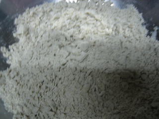 水回し(水を加えて攪拌)をしました。 最初から、水を42%入れて、あとから+2%(6cc)追加しまいましたが、ちょっと多すぎました。 ちょっと多加水気味です。 今までのそば粉が、ほぼ1年間倉庫に寝ていたため、加水率が47〜48%程度まで上がっていましたが、流石に新そばです。 蕎麦の実自体に水分が十分蓄えられているようです。 次回はもう少し、加水率を下げた方が良さそうです。たぶん42%前後。 |