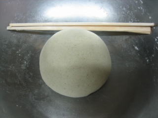 こね終わりました。 なかなか、うまく捏ねることが出来ました。 粉240g+水106ccの合計346gです。 蕎麦屋さんだと約3人前くらいですね。 |