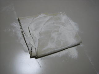 最終的な厚さになりましたので、切るために、たたみます。 玄人は一度に2kgぐらい打つそうです。 こちらは、わずか240gですので、延ばしても長いそばは期待できません。 せいぜい、乾麺と同じ20cmくらいです。 |