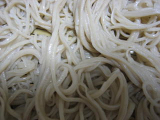 食べます。 っと、最後の最後でブレてしまいました。(^_^;) 味は・・・昨日の神田薮蕎麦の印象が強く、新蕎麦にしては・・・??、ちょっと首をかしげます。 香り自体はそこそこ。味も、土の香りが出ていて悪くはないのですが、新蕎麦の清涼感とでもいいましょうか。青臭さとでもいいましょうか。それがありません。 けっして悪くはないのですが、腕でしょうか。粉でしょうか。まあ、腕の差が大きいと思いますが。 味の濃さは、昨日の神田薮蕎麦と比べて雲泥の差で良くありません。 (神田薮蕎麦と素人が同じレベルと言うのも逆に問題ですが・・・^^;) ただ、早すぎる新蕎麦は良くない、と言う話を読んだこともあります。 茹でた後に、洗いすぎかも知れません。奥深いもんですね。 喉越しは、柿沼製粉のこのそば粉の特徴ですが、良く挽かれていて、つるつるしていてとても良いです。 このそば粉のそば粉自体に粘りがかなりありそうです。ですので、生粉打ち(100%そば粉)が出来そうです。 次回は、生粉打ちで作ってみましょう。味の濃い蕎麦に近づけるかもしれません。 |